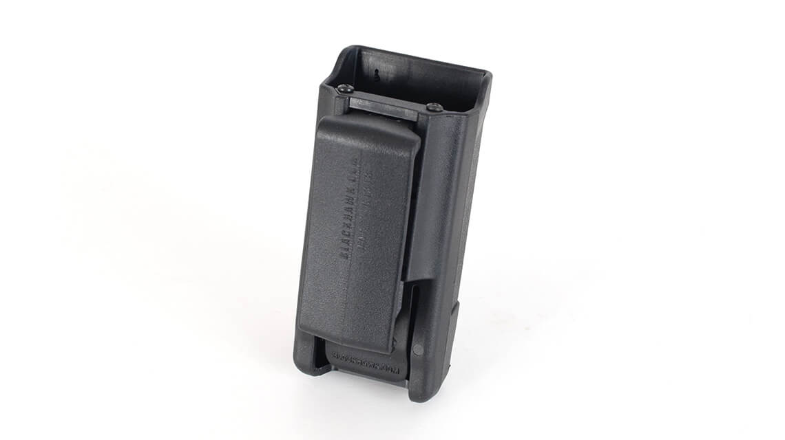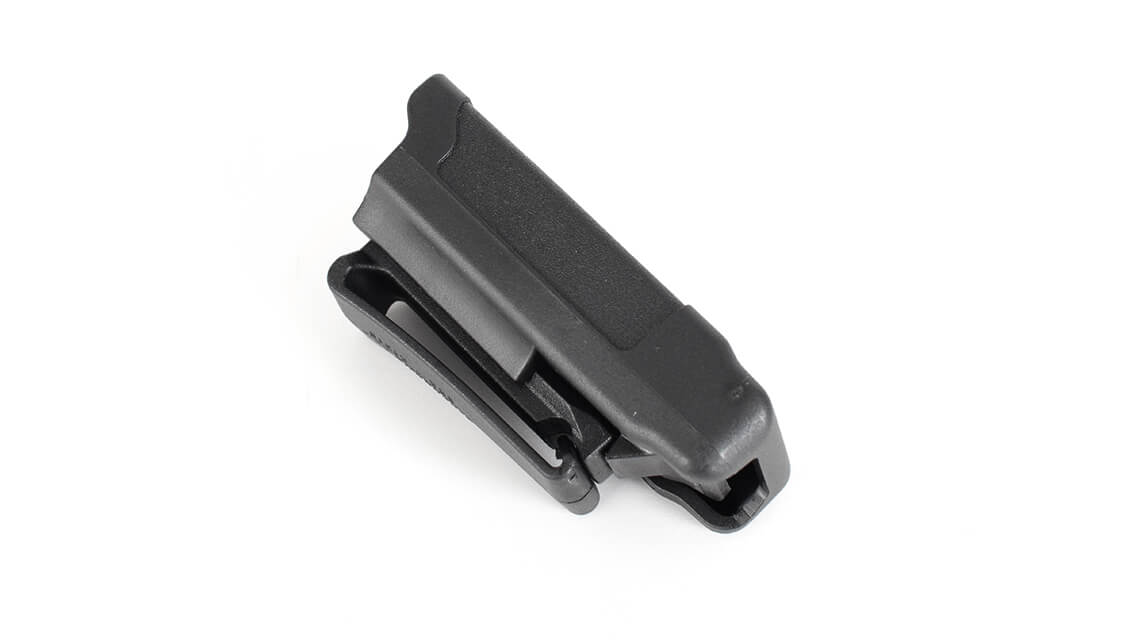 Blackhawk Tekli Şarjör Kılıfı, çeşitli boyutlardaki tekli şarjörleri güvenli bir şekilde tutan yerleşik gergi yayı içerir. Kemer klipsi çıkarılabilir ve iki adet Tekli Şarjör Kılıfı, Çift Raylı Aksesuar Platformu'na (ayrı satılır) yan yana yerleştirilebilir.