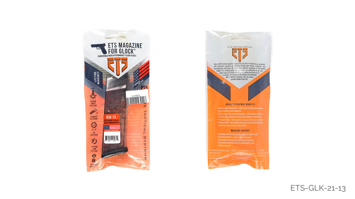 Glock 21 için 13 kapasiteli şeffaf polimer şarjör.