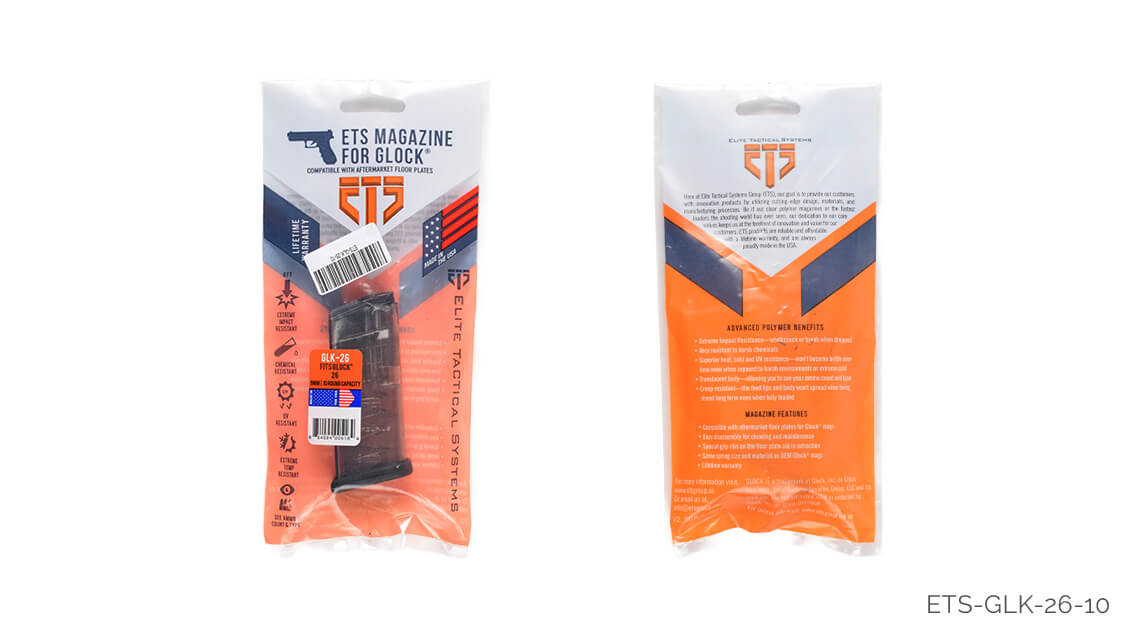 Glock 26 için 10 kapasiteli şeffaf polimer şarjör.