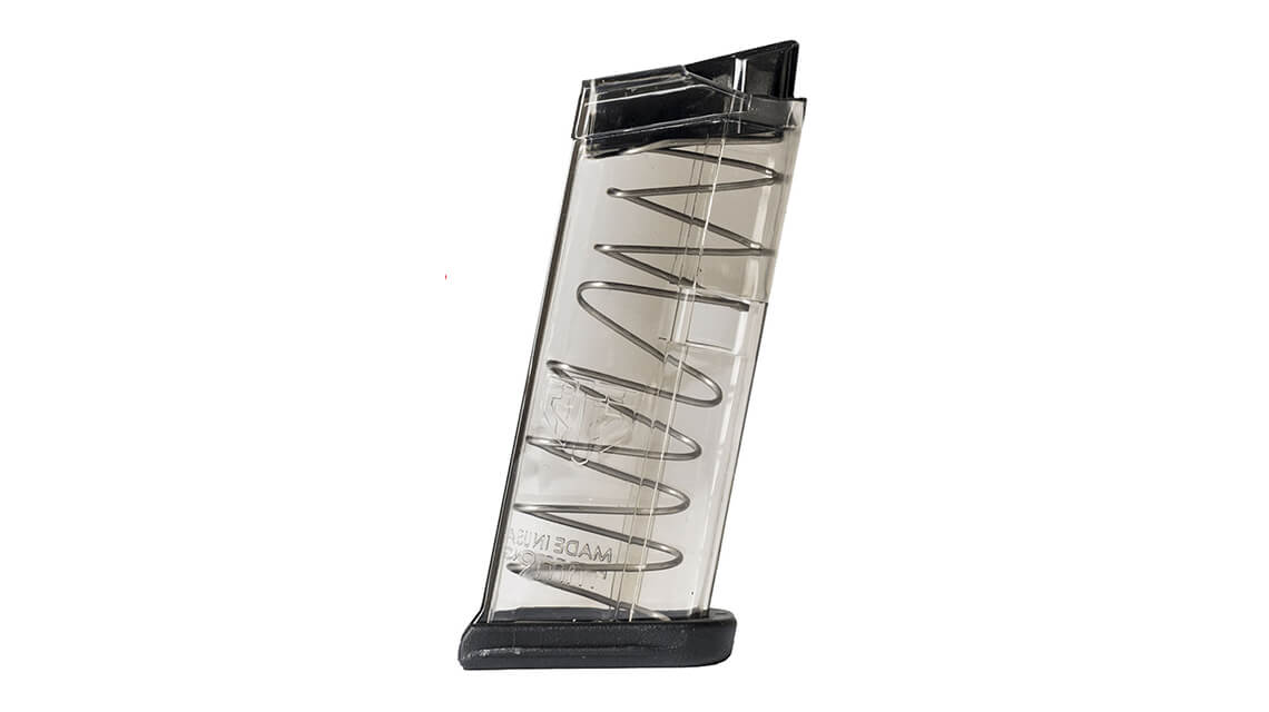 Glock 43 için 7 kapasiteli şeffaf polimer şarjör.