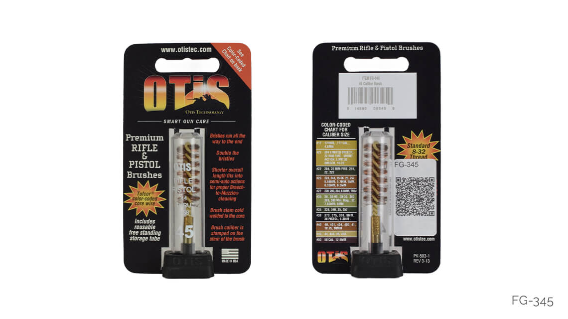 OTIS’in fırçalarının, başka marka fırçalara göre çok daha uzun ömürlü olduğunu göreceksiniz. Tasarımındaki detaylı mühendislik, soğuk kaynaklı gövde bağlantısı, fırçanın başından ucuna kadar dolu teller, tellerin kopmaması için daha sık döngü, korozyona ve tüm silah solventlerine dayanıklı Tufcor® fırça telleri sayesinde en üstün performansı gösterir. Her fırçanın gövde bağlantı yerine ölçüsü damgalanmıştır. Bu demektir ki, silahınızı hiçbir zaman yanlış fırçayla temizlemezsiniz.