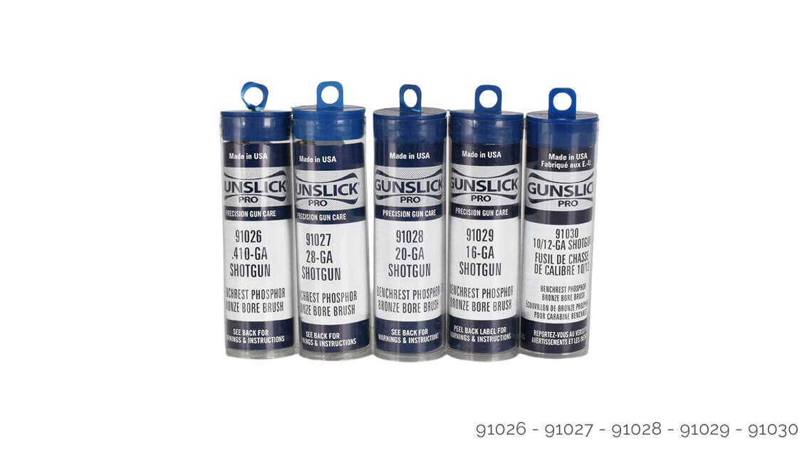 Not: .410, 12 ve 20 Ga fırçaların vida diş ölçüleri büyüktür. Gunslick yivsiz tüfek temizleme kitlerindeki adaptör ile uygulanır.