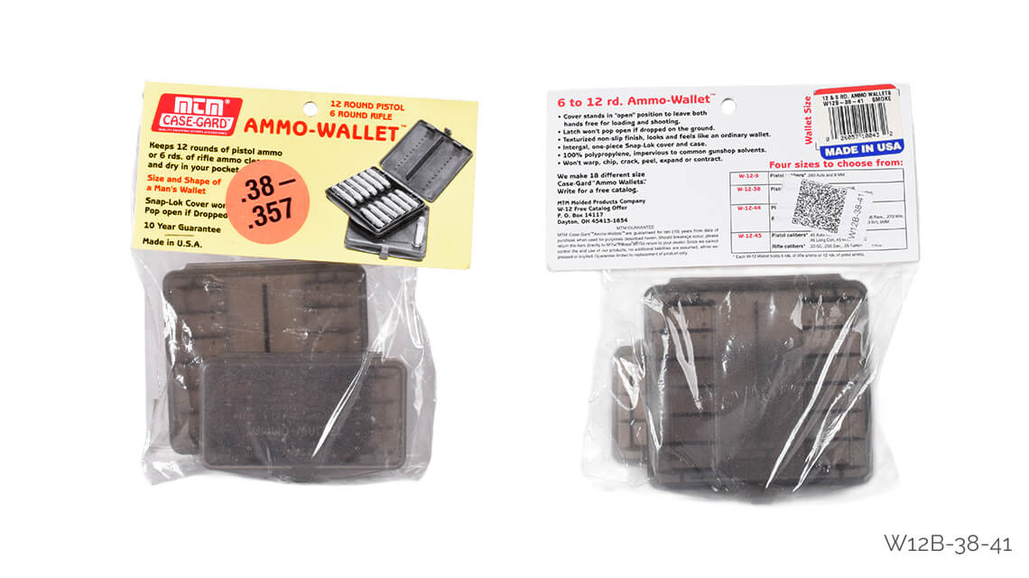 Görünüş ve taşıma olarak cüzdan hissi veren bu kutular hemen hemen tüm giysi ceplerine uyar. Cüzdan tipi kutular, yedek fişekleri sessizce taşımak için mükemmel bir yöntemdir. Her bir fişek yuvasına tam oturur ve çekirdek korunur. Kutular 18 veya 12 fişek alır.