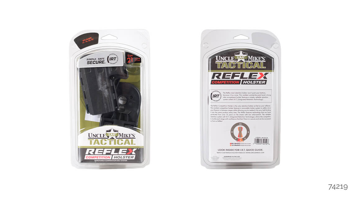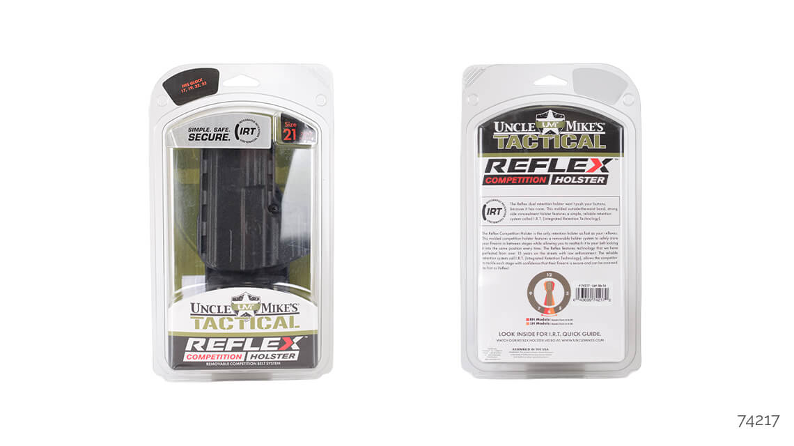 Uncle Mike's genetik mühendisliği ile hızlı çekiş konusunda uzman yarışma tipi Glock kılıfı.