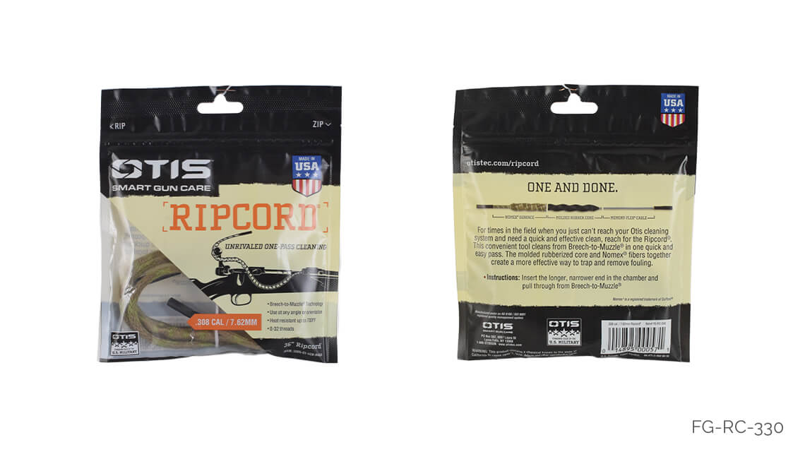 Arazi şartlarında Otis temizleme sisteminizi kullanmanın zor olduğu durumlarda, Ripcord - İp Harbi ile hızlı ve etkin silah temizliği sağlayabilirsiniz. Bu kullanışlı alet, tek bir geçişte silahınızı mermi yatağından namlu ucuna kadar temizler. Kalıplı kauçuk gövde ile Nomex kordon, atış artıkları temizlemede son derece etkilidir.