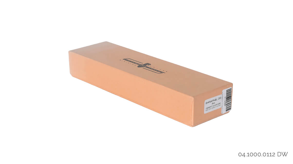 Shrapnel dikkat çekici savaş yeteneği olan gerçek bir "yedek” bıçaktır. Yaprak şekilli namlusuna geniş ağız açılmış ve dar açılı biley ile keskinleştirilmiştir. Otomatik kilitli sert kını tek-lok özelliktedir; yani belde ister dik, ister yatay olarak taşınabilmektedir. Kındaki tek emniyet, bıçağın çekilmesinde ve kına yerleştirilmesinde kullanılan baskı noktasıdır. Bu kilitleme sistemi bıçağı acil durumlarda çok hızlı kullanılabilir kılmaktadır.